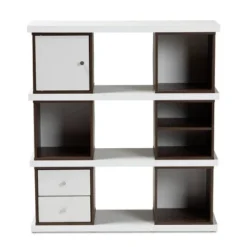 The countless possibilities for display and organization are easy to imagine with the Legende bookcase. The modern and contemporary-inspired design incorporates mid-century elements into its staggered, geometric layout. The Legende’s engineered wood frame is finished in a warm , contrasted with back panels of the more narrow display compartments. The bookcase features three layers of shelves, each with a wider open space, and a smaller edge compartment with back panels. This opens up the possibilities for storage solutions and creative decor display options. This charming and modern shelf will add a delightful energy to your livingroom, guest room, bedroom, or even a home or private office. Made in Malaysia, the Legende requires assembly. Dimensions: 40.2″ High x 23.6″ Wide x 9.4″ Deep
