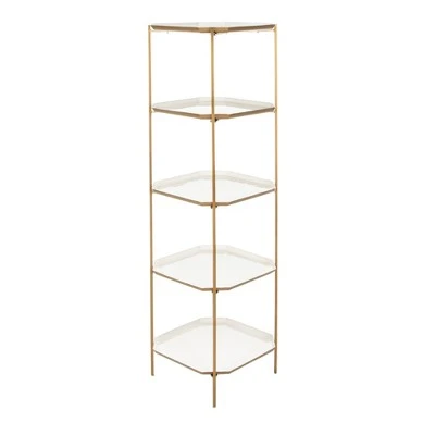 This classic 5-tier étagère features a fresh contemporary twist with it posh white shelves. A design investment, its fine iron construction features a luxurious brass finish that frames its layers of ample open storage. The generous space provided by these shelves can stylishly showcases any personal belongings you treasure, such as books, flowers, photo frames and more. with a weight capacity of fifty pounds, feel free to display all the items you desire. Designers love to use them in pairs.