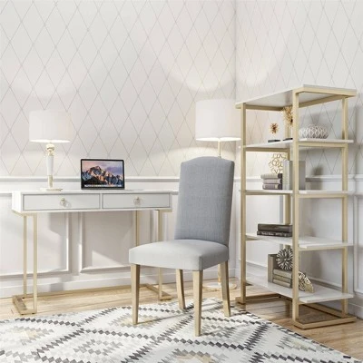 - White or gray finish with gold accents adds a sophisticated modern look to your home office or living room