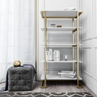 Nab our style for yourself with the CosmoLiving by Cosmopolitan Camila Five Shelf Bookcase. Straight lines and modern gold metal legs give this bookcase top-notch design perfect for any fashionista. Obsessorize with the 5 open shelves that provide ample storage for all of your ~things~. A wall anchor kit is included to secure the bookcase to the wall and prevent tipping injuries. Available in crisp white or dark gray, the bookcase is a space-saving dream come true.