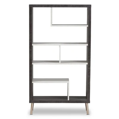 The trendy concrete optics go extravagantly through the living world and rewrite the fashion story. In addition to the trendy look, the Atlantic display shelf has a maximum of storage space, presenting your decorative items stylishly. Constructed of engineered wood with two-tone finishing in concrete and sycamore white, the Atlantic display shelf features open compartments for organization. Made in Malaysia, the shelf requires assembly. Dimensions: 56.14″ High x 31.1″ Wide x 11.42″ Deep; Upper Left&Lower Right Shelves: 9″ High x 18.27″ Wide x 11.26″ Deep; Upper Shelf I: 18.5″ High x 28.18″ Wide x 11.26″ Deep; Middle Shelves: 9″ High x 13.8″ Wide x 11.26″ Deep; Lower Left Shelf: 18.5″ High x 9.33″ Wide x 11.26″ Deep; Legs 6.06″ High