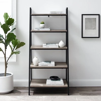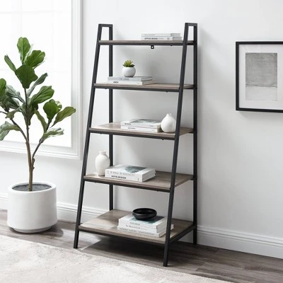 You can lean on Saracina Home’s 56″ Metal and Wood Tiered Ladder Bookcase to showcase your style with flair. A slim, powder-coated steel frame outlines a clean silhouette, perfect for contemporary and urban industrial decorators. The innovative leaning ladder design offers five fixed shelves of various sizes to steadily supports trinkets of all shapes and sizes. Keep the unit stable by securing it with the included wall anchor. Whether you use it to house your growing collection of houseplants or novels, the contemporary bookshelf steps up to the task. Tie your home together by pairing this desk with other matching pieces from the urban industrial collection.
