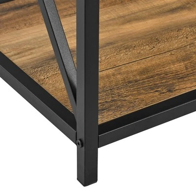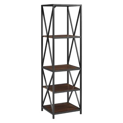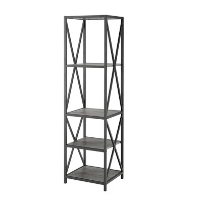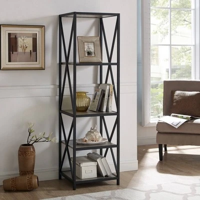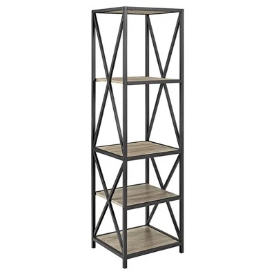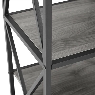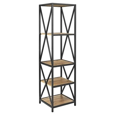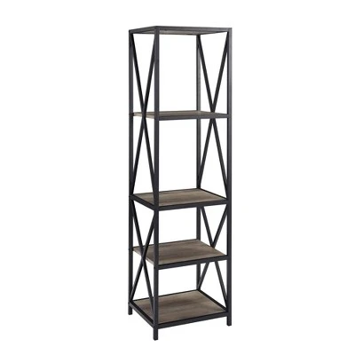 61″ Modern Farmhouse X Frame Metal and Wood Media Bookshelf – Saracina Home Driftwood