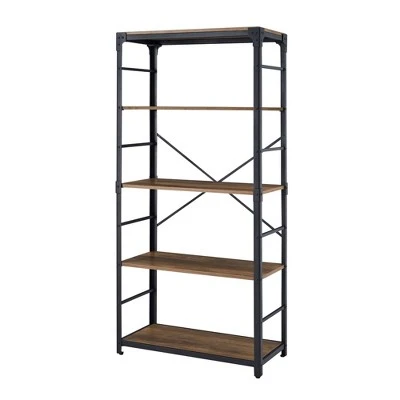 Whether you want to add a masculine element to your bohemian inspired space or capture the spunk of a raw-material look, this metal and wood vertical shelf can deliver on your design dreams while increasing your storage capabilities. With four open shelves, this 64-inch storage unit functions as a bookshelf, media tower, or display shelf. Unit accents include: lateral metal bars, angled brackets at the top, and a thin metal X detail. Plus, this industrial piece comes with wall-fastening for extra stability so if your house is the party place, you and your friends can bust a move worry free.