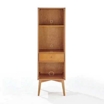 Crafted with a mid-century modern flair, the Landon Record Storage Bookcase will hold your favorite turntable and vinyl in style. A large center compartment fits your retro record player and the lower compartment is sized to house all your favorite records. Each compartment including the top display shelf, has perforated holes for cable management. The bookcase also includes a large storage drawer for smaller items. The combination of retro chic and modern function makes the Landon Record Storage Bookcase a vinyl enthusiast’s dream.