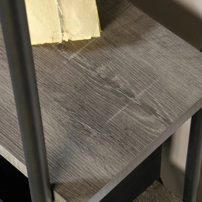 Stack it, store it, and display it with this 5-shelf bookcase from the Canal Street collection. It features five fixed, 1″ thick shelves to hold and display books, knick-knacks, plants and more! It decorative, powder-coated metal frame and rear crossbars for stability add an extra touch a style that will stand out in any room. Finished on all sides in Northern Oak, this versatile bookcase will add a little industrial charm to your home.