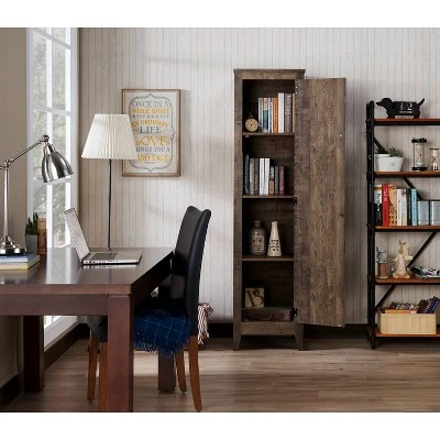 Take farmhouse style decor to the ultimate level with this rustic cabinet. The vertical stand is a prominent furnishing. A barn-style door with a square knob seems to suggest a minimalist lifestyle. However, the oak finished shelf has a bold country stance, that you can’t ignore. Use the piece as a pantry in the kitchen or a bookshelf in the living room.
