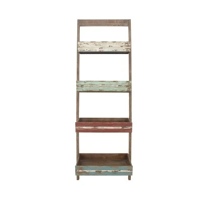 70″ Wood 4 Shelf Leaning Shelf Book Shelf Brown – Olivia & May