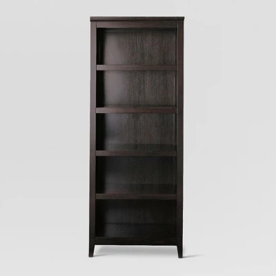 The Carson 5-Shelf Bookcase from Threshold is the perfect size and fit for any room in the home. Made from durable wood, this bookshelf features five spacious shelves for displaying your favorite books, art and collectibles. Clean, modern lines make this piece easy to mix in with any style of decor, whether in your bedroom, living room or home office.