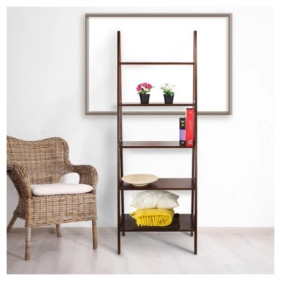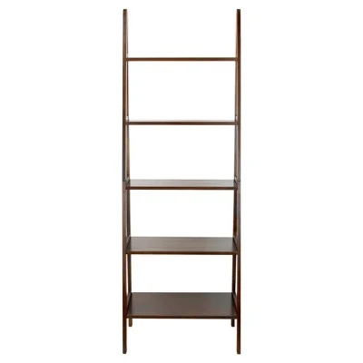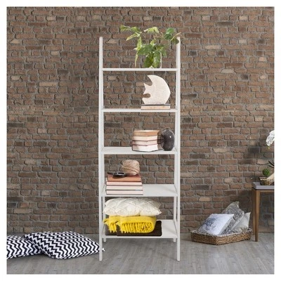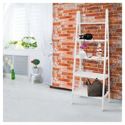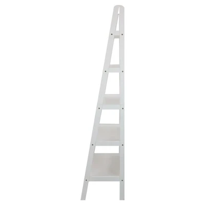 Gentle slants and right angles make this Ladder Style Bookshelf an exciting alternative to your traditional rectangular bookcase. The 5 shelves retract in length as the bookcase ascends to accent your decor placement naturally. Complete your layout with a progressive piece that has classic features. Product dim: 24.75″W x 16″D x 72″H. Light and easy assembly. Perfect for books, collectibles, and more.