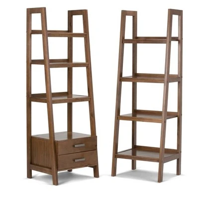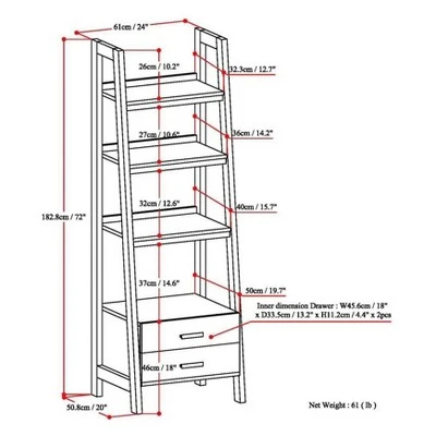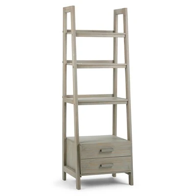 72″x24″ Hawkins Solid Wood Ladder Shelf with Storage – Wyndenhall Distressed Gray