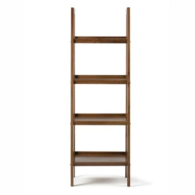72″x24″ Hawkins Solid Wood Ladder Shelf with Storage – Wyndenhall Medium Saddle Brown