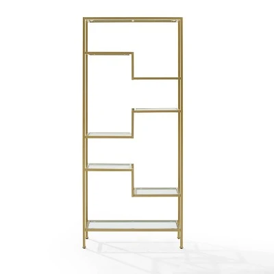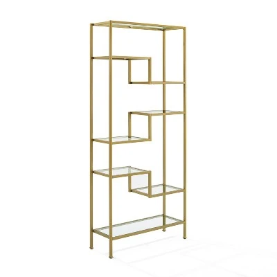 Modern beauty and functional simplicity are the hallmarks of the Sloane Etagere. Ready to display precious keepsakes or your favorite books, this etagere’s sculptural steel frame features sturdy tempered glass shelves. Variable shelf heights create a geometric design with Art Deco flair, making the Sloane Etagere an ideal bookcase or display space.