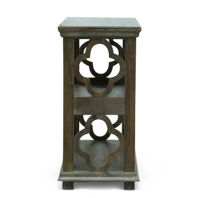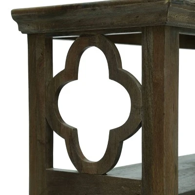 Hold more than just books atop a thoughtfully crafted accessory that complements any space. Featuring an elegant traditional design, our bookcase uses an ornate frame and beveled top for a sleek and sophisticated feel. The rich mango wood frame offers a highly durable structure that features beautiful a gray finish and golden brown undertones with delightful spalting for a natural touch. Finished with two spacious shelves for display and ample organization, this etagere bookcase allows you to easily integrate your personality into your home.