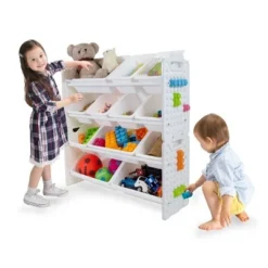 UNiPLAY Toy Organizer With 12 Removable Storage Bins and Block Play Panel, Multi-Size Bin Organizer