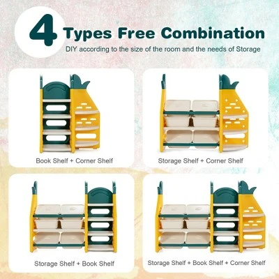 Costway 3-in-1 Kids Toy Storage Organizer Bookshelf Corner Rack w/ Plastic Bins