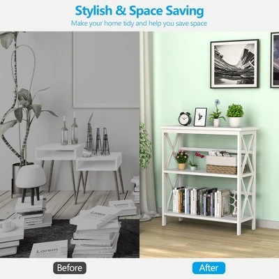 Costway 3-Tier Bookshelf Wooden Open Storage Bookcase for Home Office WhiteBlackCoffeeNatural