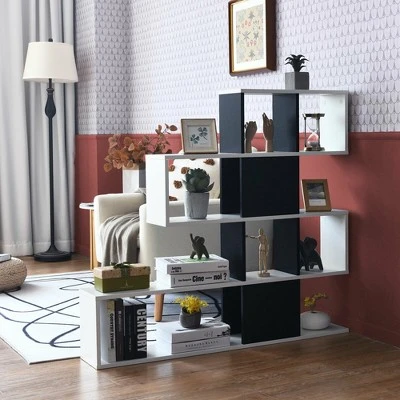 If you are looking for a piece of furniture that can decorate your room and add extra storage space, our 5-tier bookshelf is a perfect choice! With its unique ladder-shaped appearance and classic color collocation, this bookcase can fit into various furnishing styles on different occasions, such as lounge, living room, bedroom, office, etc. It is designed with 5 large open shelves, so as to greatly expand the space for storage and display. You can put your favorite collections, books and pot plants on the shelf to make your personal presentation. What’s more, with its sturdy wooden construction and anti-tipping device, the free-standing bookcase is not likely to wobble or collapse. Specification: Color: Black & White. Material: Engineered Board. Overall Dimension: 47” x 8” x 43” (L x W x H). Net Weight: 40 lbs. Shelf Height: 10”. Weight Capacity: 44 lbs (Each Shelf). Package Includes:. 1 x Bookshelf. 1 x User’s Manual.