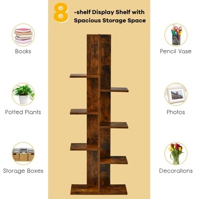 Costway 8-shelf Bookcase Freestanding Tree shelf Display Storage Stand BlackWhite
