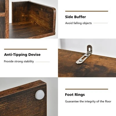 - Stable Wooden Bookcase: The selected wood boards help form a strong structure to hold your things stable. Each compartment has a load-bearing of 11 lbs/5kg. And with an anti-tipping device, this bookcase is safe to use in your home with children and pets. The anti-skid foot rings to strengthen the stability and also keep your floor intact.