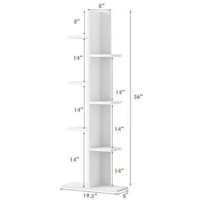This elegant 7 tier open concept display shelf with modern open concept design and durable construction, is very stable and sturdy .The zig-zag style fixed storage shelves not only can decorate your room ,but also can display your favorite decorative items. You can place it in your living room, bedroom ,office etc. It is a good ornament that let your room full of fashion sense. Specification: Color:White. Material:Wood. Net weight:22.0lbs. Product size:20” x 8” x 56”(L x W x H). Weight capacity:88 lbs. Each tier weight capacity:11 lbs. The height of each tier:12”. Package includes:. 1 x Storage shelf.