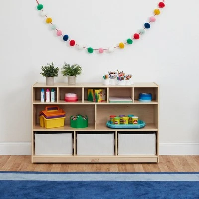 ECR4Kids Birch 5+5 Storage and Cubby Tray Cabinet with Rolling Casters, Mobile Classroom Organizer