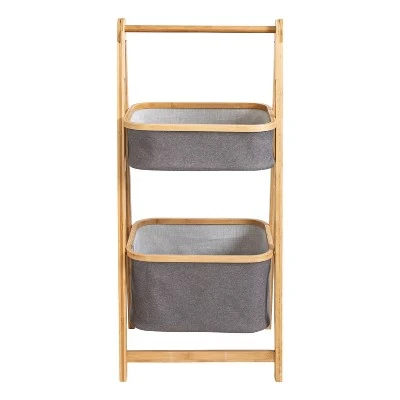 Honey-Can-Do 2 Tier Bamboo and Canvas A-Frame Shelving Unit