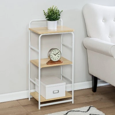 If a desk surface has turned into more of a filing cabinet, this 3-tier shelf might help. Its generous storage space restores desks from storage spaces back into workspaces. This handy shelf is the perfect companion for a writing desk, picking up the organizational slack and saving desks for the really important stuff, like laptops, notebooks, or snacks (you know, brain food). With a frame constructed from steel, and shelves coated with a protective veneer, this shelf can handle a haul of heavy books; baskets of cables and cords; or something light and fun, like a leafy plant or a framed photo.