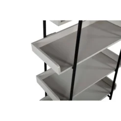 74" 6 Tier Wooden Ladder Storage Bookshelf with Metal Frame Gray/Black – The Urban Port