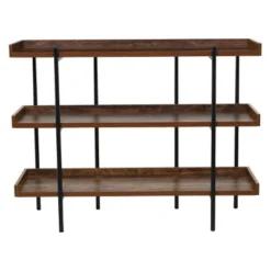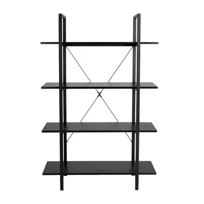 Modern Industry Metal/Wooden 4 Tier Bookcase with Shelves – Glitzhome Black