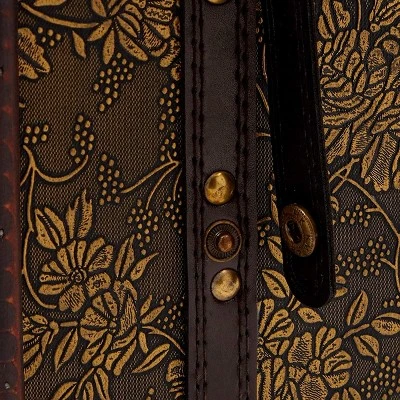 - 4 Bottle Wine Carrier: Keep wine bottles secure with this decorative wine case; the brass latch and straps with snaps will ensure contents remain safely inside
