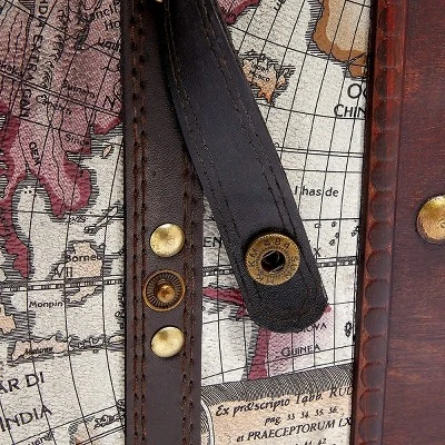 Elevate your rustic home decor or with this decorative bottle carrier made especially for wine bottles that can be used as storage in your home to keep wine bottles away from light, dust, and other disturbances. An ideal alternative to traditional wine bags, the faux leather straps, and brass snaps will ensure wine bottles remain safely inside while on the go. The 11 x 8.5 x 9.8-inch holder fits only standard-sized wine bottles or smaller, not champagne bottles.Product names are trademark of listed manufacturer or other owners, and are not trademarks of eForCity Corp. The manufacturer does not necessarily endorse use of these products.