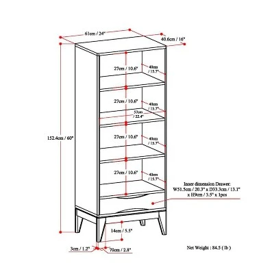 - Dimensions (Overall): 60 Inches (H) x 24.02 Inches (W) x 15.94 Inches (D)