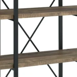 54.75" Bookcase with 4 Tier Storage and X Metal Band Brown/Black – Benzara
