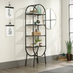 70" Boulevard Café Oval Open Shelving with Vintage Oak Accents Black – Sauder