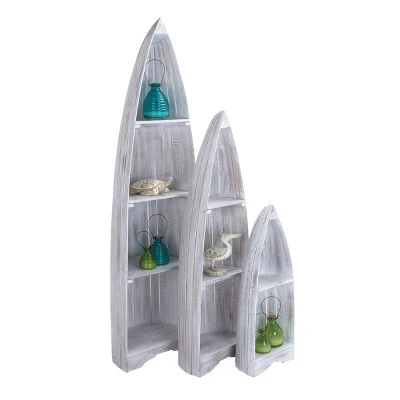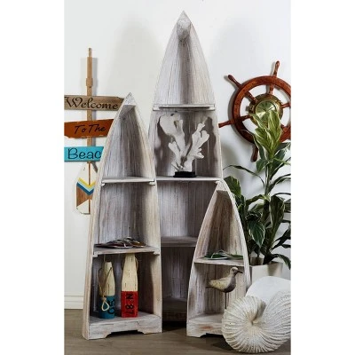 Set of 3 Coastal Wood Shelving Unit – Olivia & May Brown
