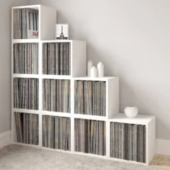 Way Basics Eco Stackable Vinyl Record Storage Cube Natural Wood Grain