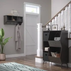 Woodbury Storage Cabinet with Cubbies and Veggie Bins and 2pc Bin Woodgrain – RiverRidge Home