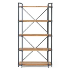 Yorktown 66.75″ 5-Shelf Industrial Bookcase Brown – Christopher Knight Home