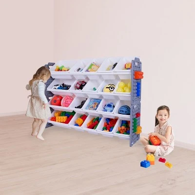 - MORE STORAGE — A combination of 20 removable bins, 4 large and 16 small, to provide ample space for your toys, books, arts and crafts, office supplies and pantry
