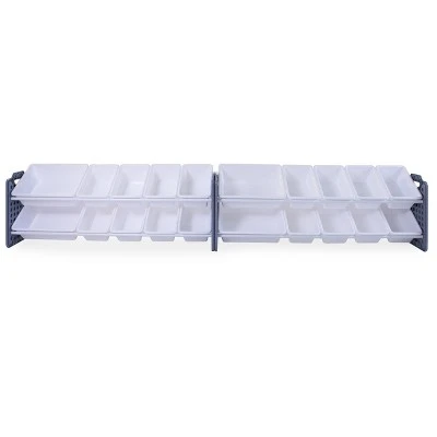 - SPECIFICATIONS — The 4 large removable bins measure 16.14×11.70×5.16 in and the 16 small plastic bins measure 8.11×11.70×5.08 in