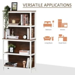 HOMCOM 4 Tier Bookshelf Utility Storage Shelf Organizer with Back Support