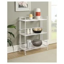 34″ Adams 3 Shelf Bookcase with Concealed Sliding Track White – Flora Home